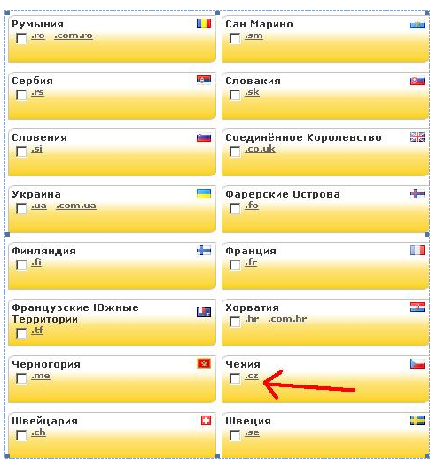 Например выбираем Чехию. Теперь нам нужно узнать сам домен Чехии.